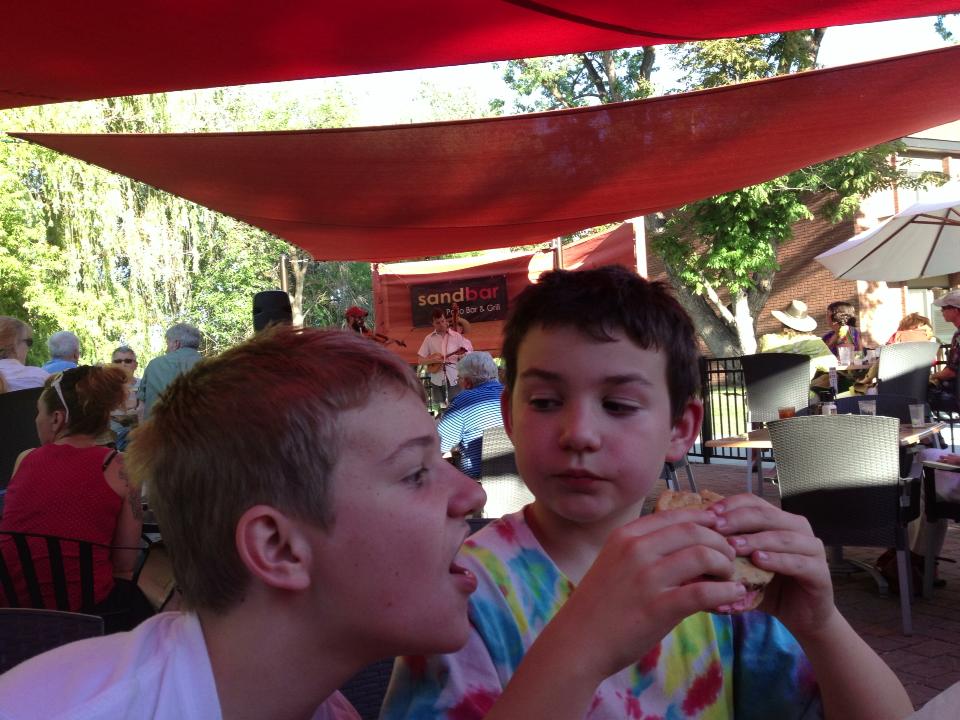 Humphrey the Hawk, who is probably dying under that costume. It’s a thousand degrees out. - Partaking in patio – Around about the beginning of July it’ll get hot enough you’ll feel pretty melty no matter what you do, and it’s best just to sit. We prefer Sun Ray Café in Boise’s Hyde Park neighborhood, the Sandbar on the Boise River, or Lucky 13 (coincidentally almost exactly thirteen miles by bike from our front door), for a snack, a cold drink, and maybe some live music on a hot afternoon.