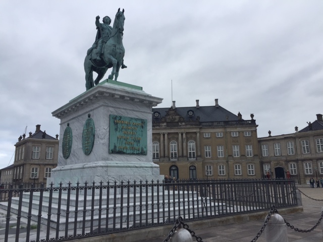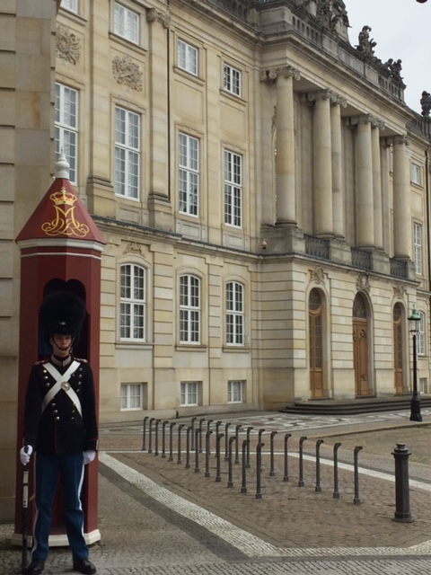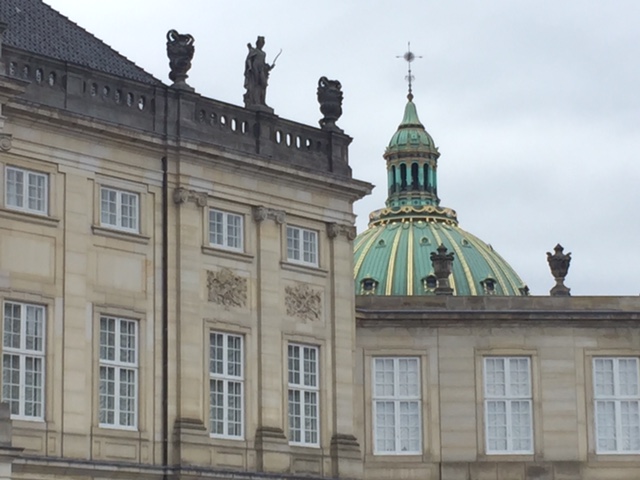 With regard to the other castles, let’s just say, we WAY overestimated our castle stamina, people. Mom was done with what will hereafter be known as our Epic Afternoon of Castle by that point, so we decided to wander down toward the harbor to look at the great marble cathedral, which we’d seen from our boat tour, and at least the outside of Amalienborg, the home of the Danish royal family (who were not in residence at that moment, so it wasn’t like we were barging in).
