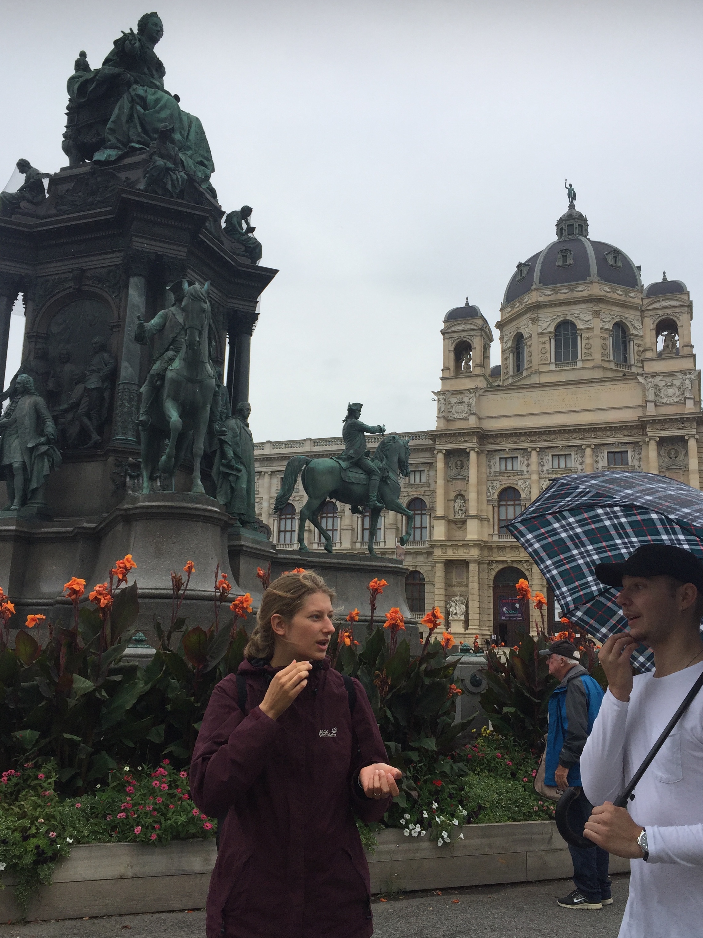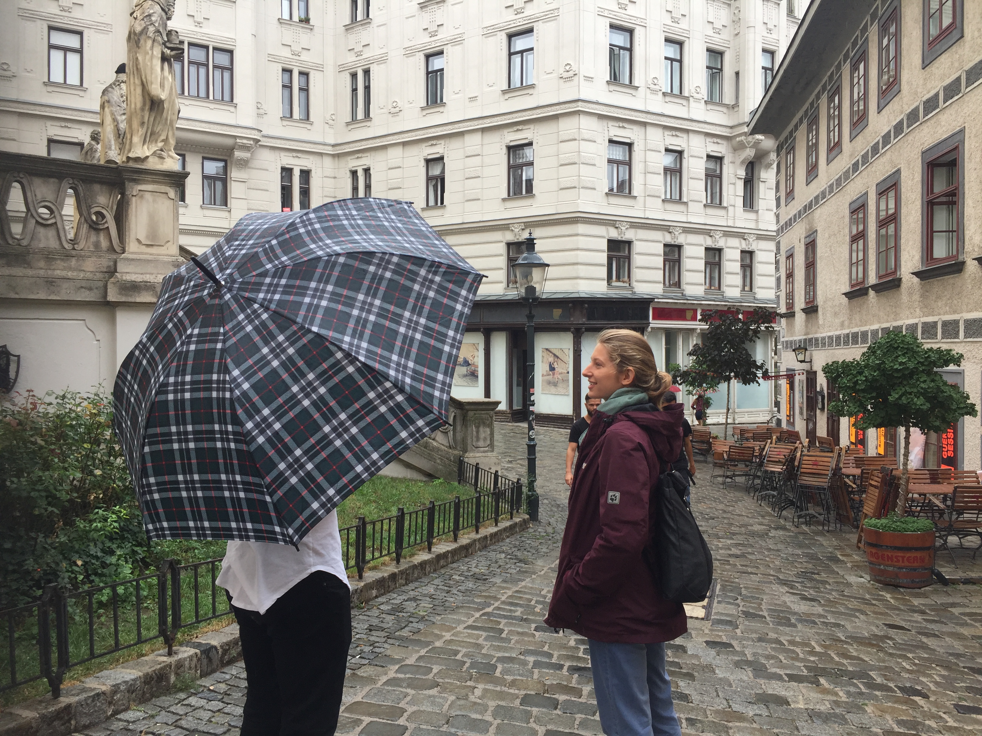 The next day we headed back into Vienna for a more substantial (and we hoped drier) tour of the city. Hanna had some time to spare, so we met up with her again, starting over at St. Stephen’s Cathedral. From there, we walked to the Vienna State Opera House to tour along the Veinna Ringstraße. The historic “ring street” runs along some of the city’s most famous historic buildings. We ducked down a few side streets with Hanna, and spent a good deal of time in the city’s 6th district, called Mariahilf. The guide books describe this area as quirky and bohemian. Hanna says it’s popular with university students. She showed us where she took drawing lessons, and pointed out her favorite hangouts, paper shops, restaurants, and cafes.