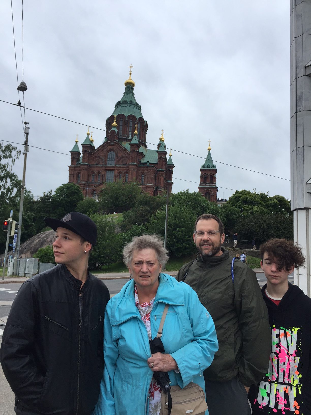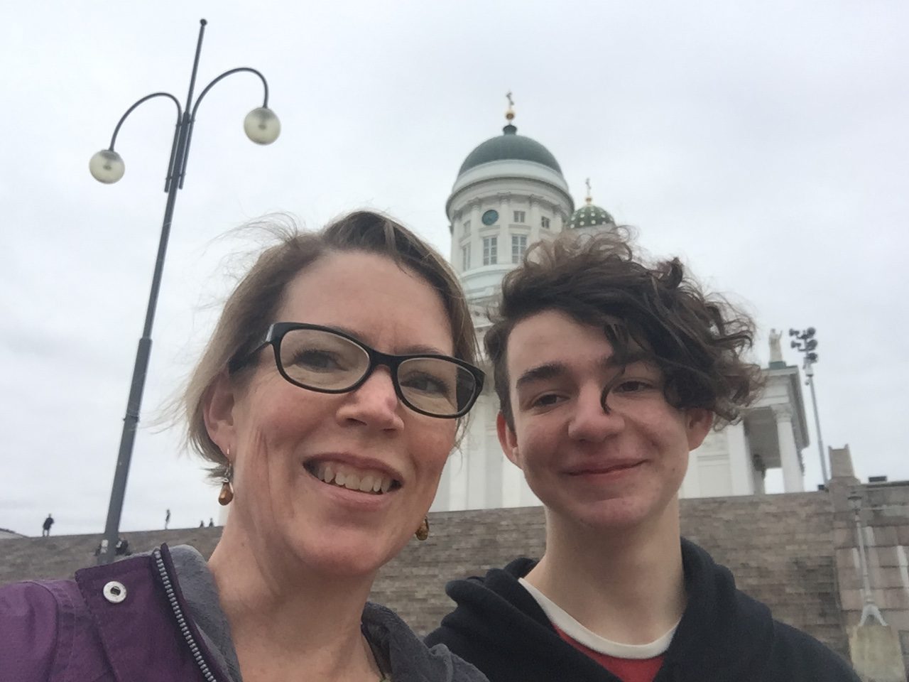 That night we took a late flight to Helsinki for the next leg of our tour, got into town at about 11:15 pm, and took a train to downtown and a cab to our airbnb flat. THEN, mom and I sat on our luggage at the door to the building while Mike and the boys walked to a convenience store to pick up the keys from someone who was holding them for the owner.
