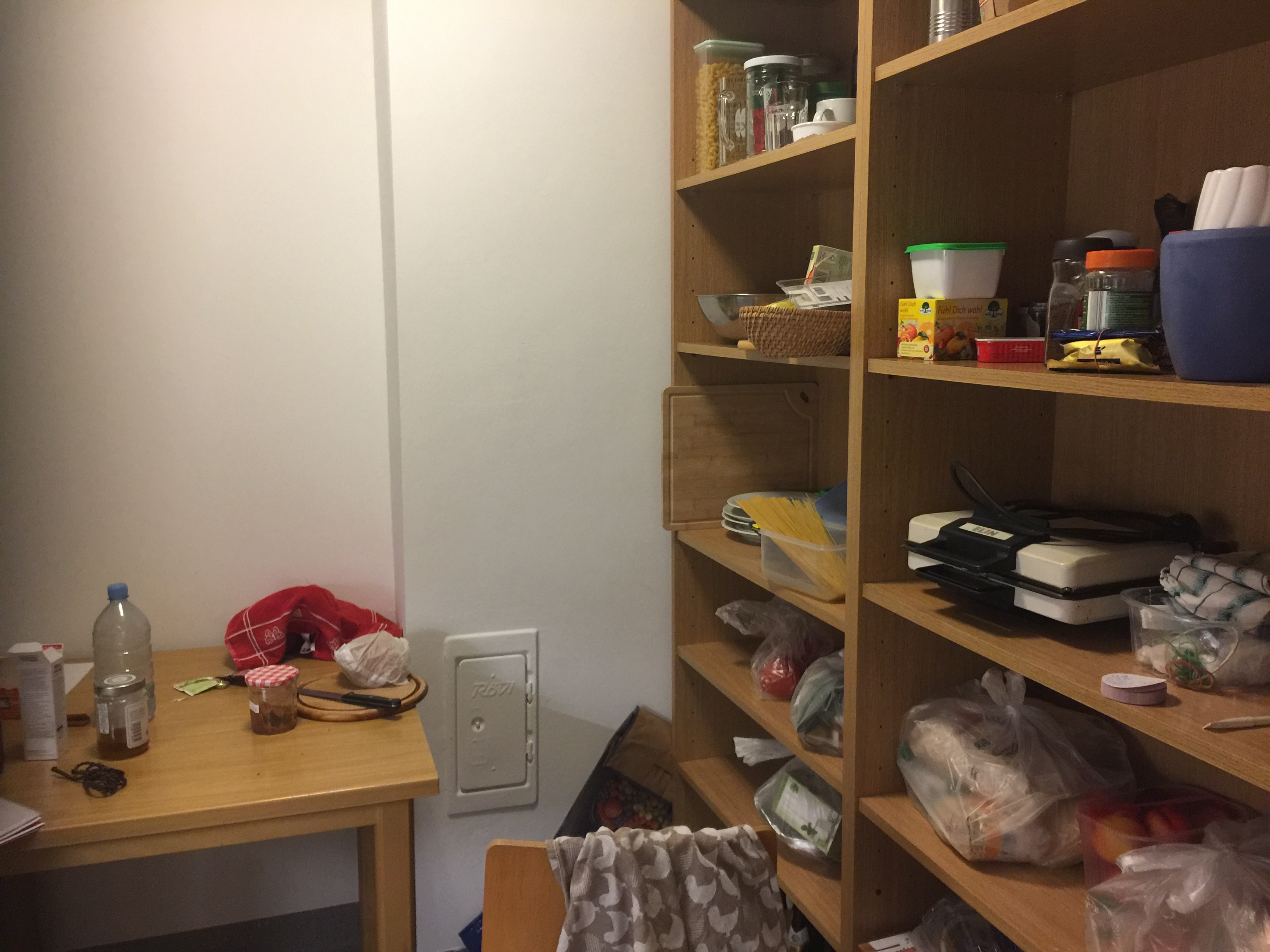 Oh and when we returned to the dorm, we met Jack’s roommate, who had cleaned things up considerably. He had emptied out the kitchen and bathrooms completely and was in the process of disinfecting the kitchen pantry area because there’d been some problem with an infestation that should be taken care of in a week or so. In the meantime, Jack and his roommate will use the kitchen in the unoccupied space next door.